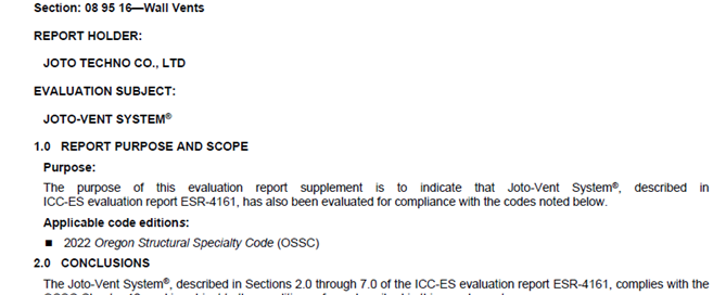ICC-ES ESR-4161 CBC/CRC SUPPLEMENT / ESL-1274 The Joto-Vent System® [...]
