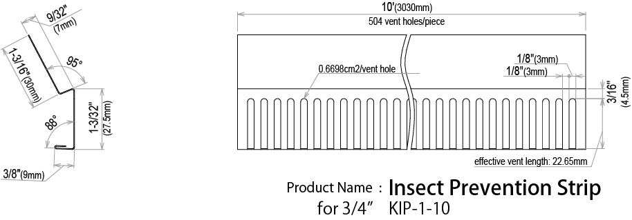 The 1 x 6 Insect Prevention Strip is a galvanized steel plate conforming to ASTM A792 called “galvalume”. It has a minimum opening of 1/8 inch, which provides efficient underfloor ventilation while also providing an insect prevention. By combining with Z-Covering with smaller protruding dimensions (sold separately), it can minimize the impact on the aesthetic appearance while preventing deterioration of the bottom edge of the siding. This Insect Prevention Strip is ICC-ES approved.