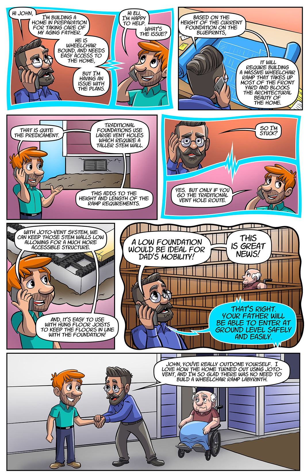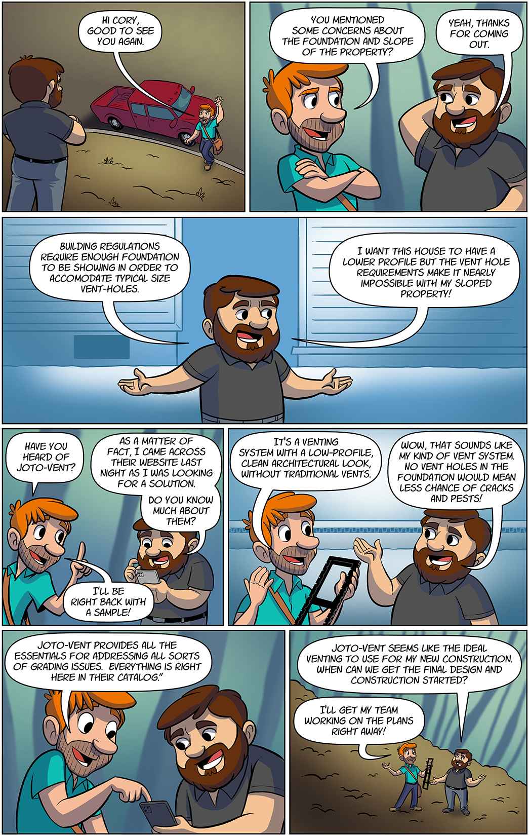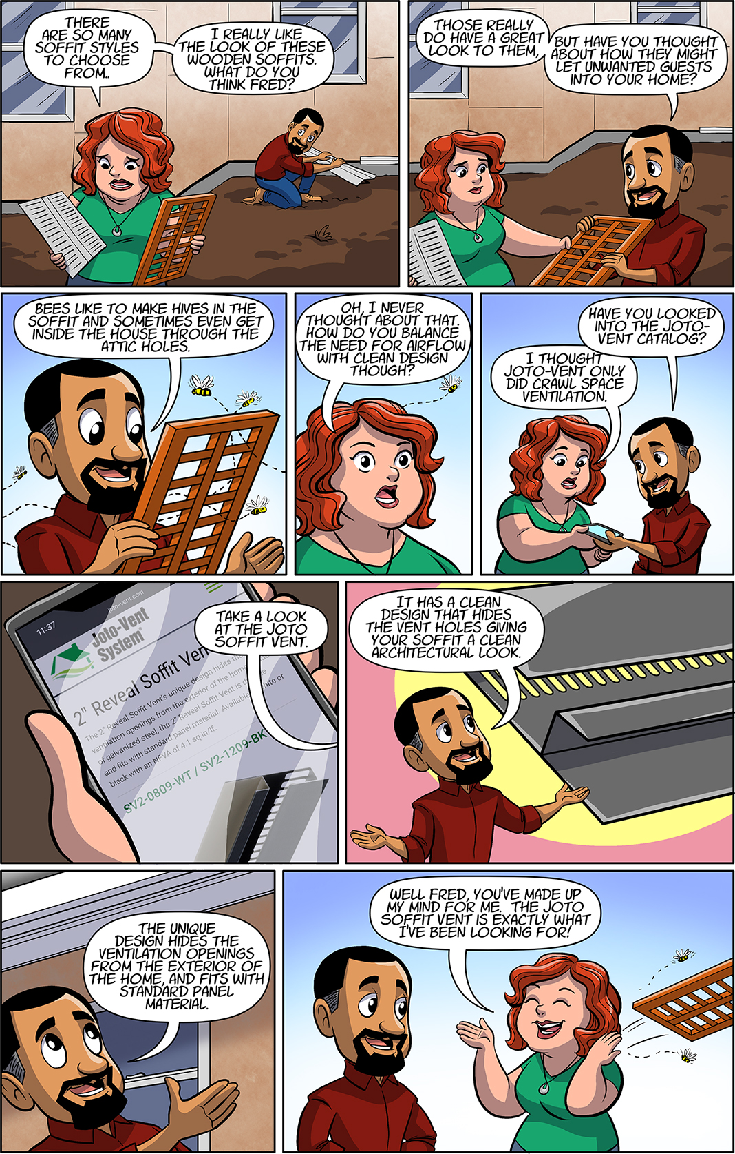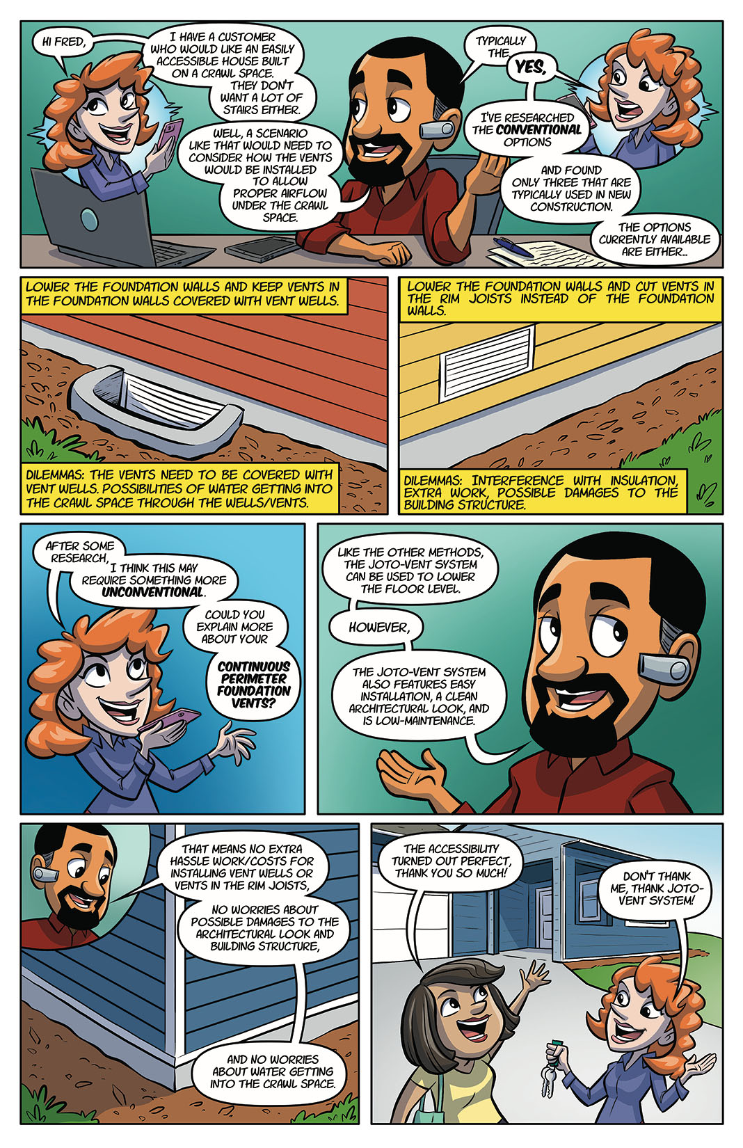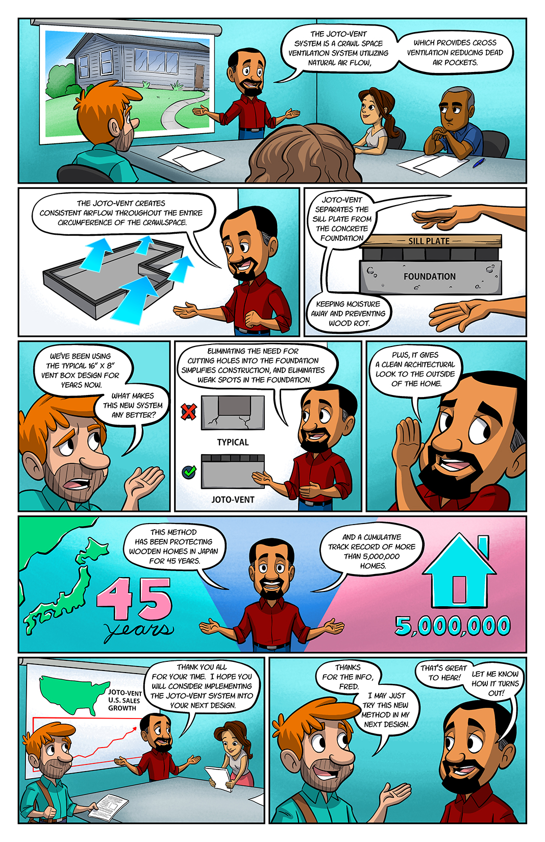 Here are some of the comic strips that we have created to help our customers learn about our crawlspace ventilation system. Feel free to contact us with any questions you may have or feedback on the comic strips.